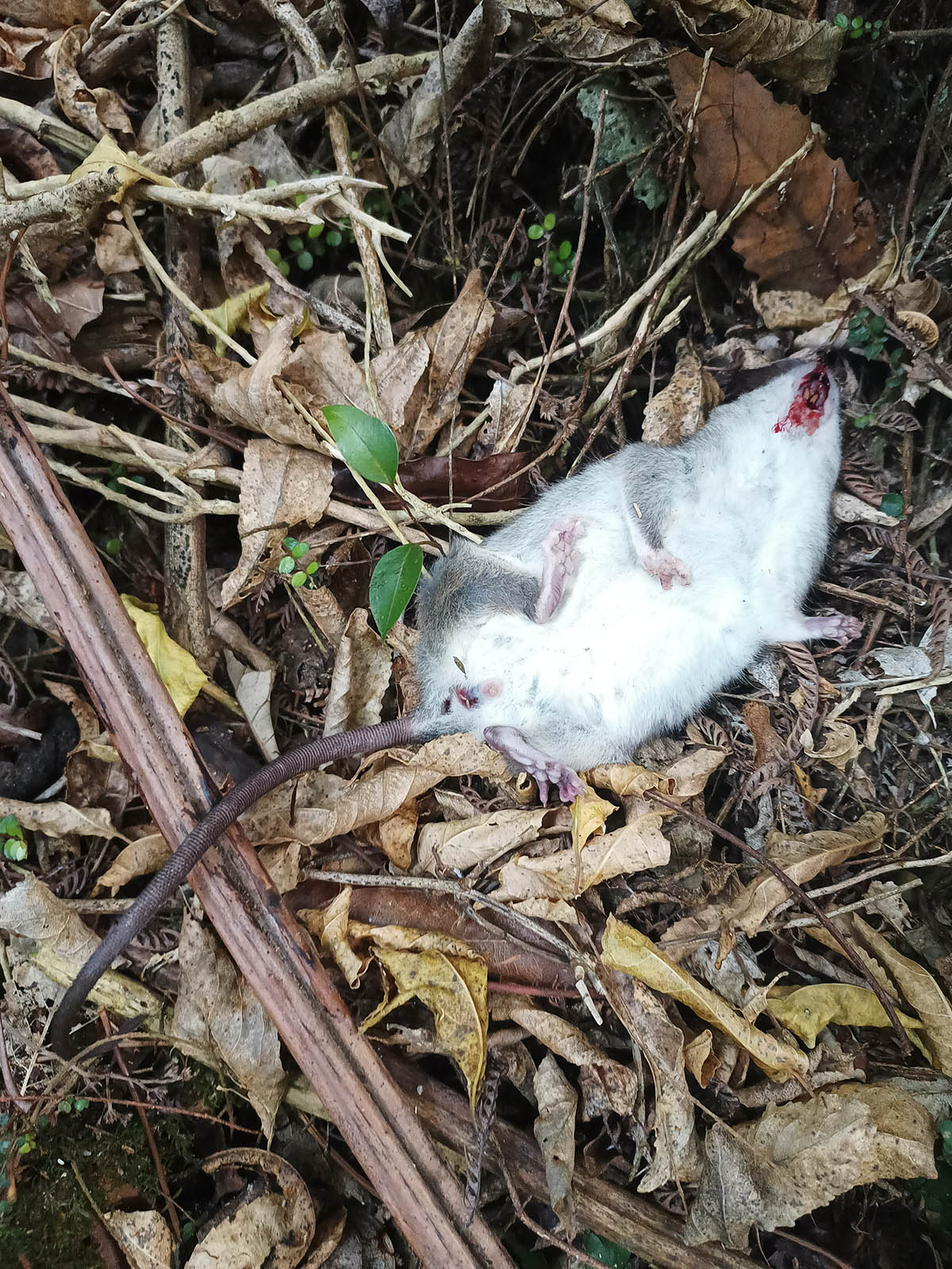 A couple of traps were set off which could have been due to tree branches falling on them, or deer kicking them accidentally, or whatever other random reason. In some, the bait disappeared mysteriously, so we had to rebait them. But a few had killed rodents – four hedgehogs and two rats. One was still quite fresh. Poor bugger.