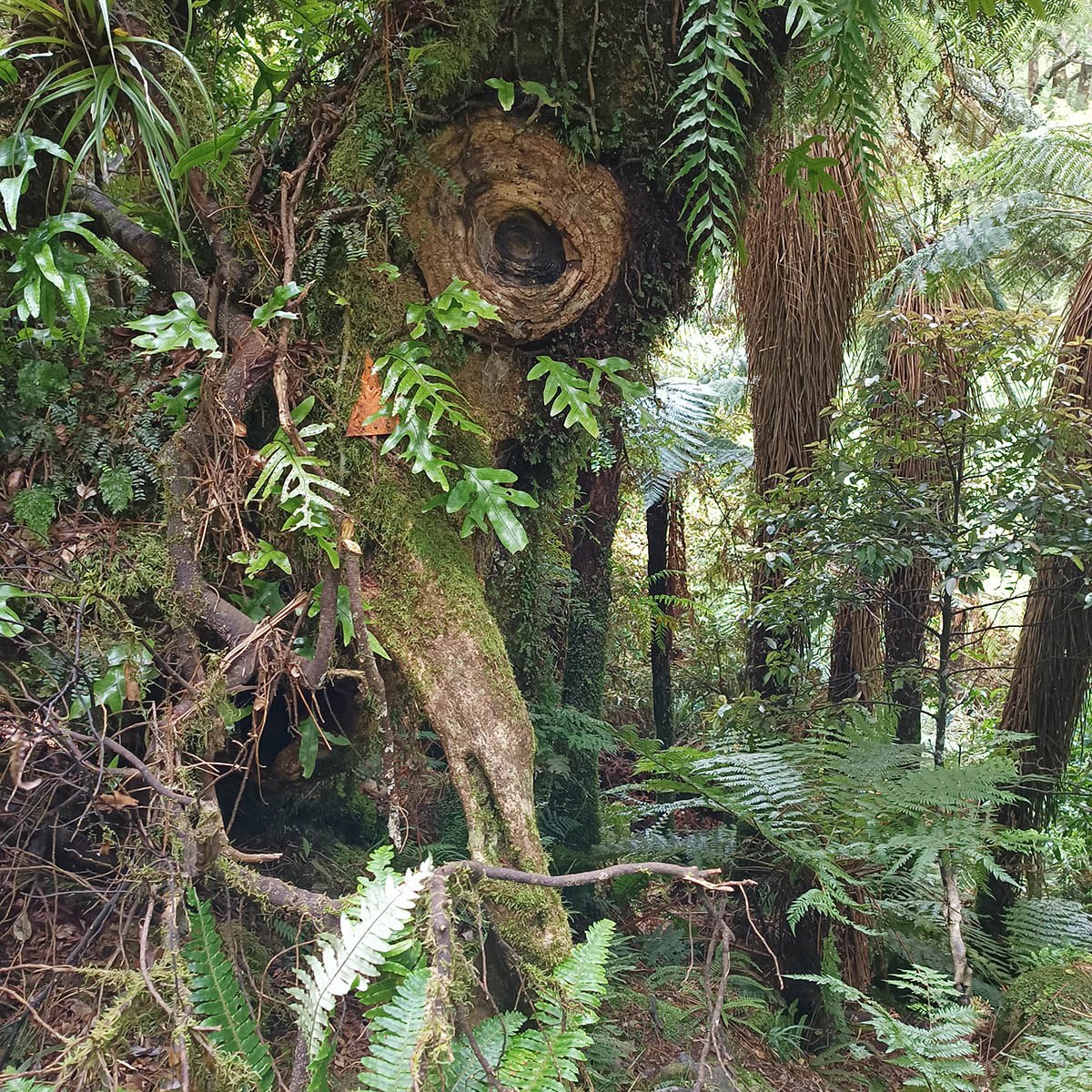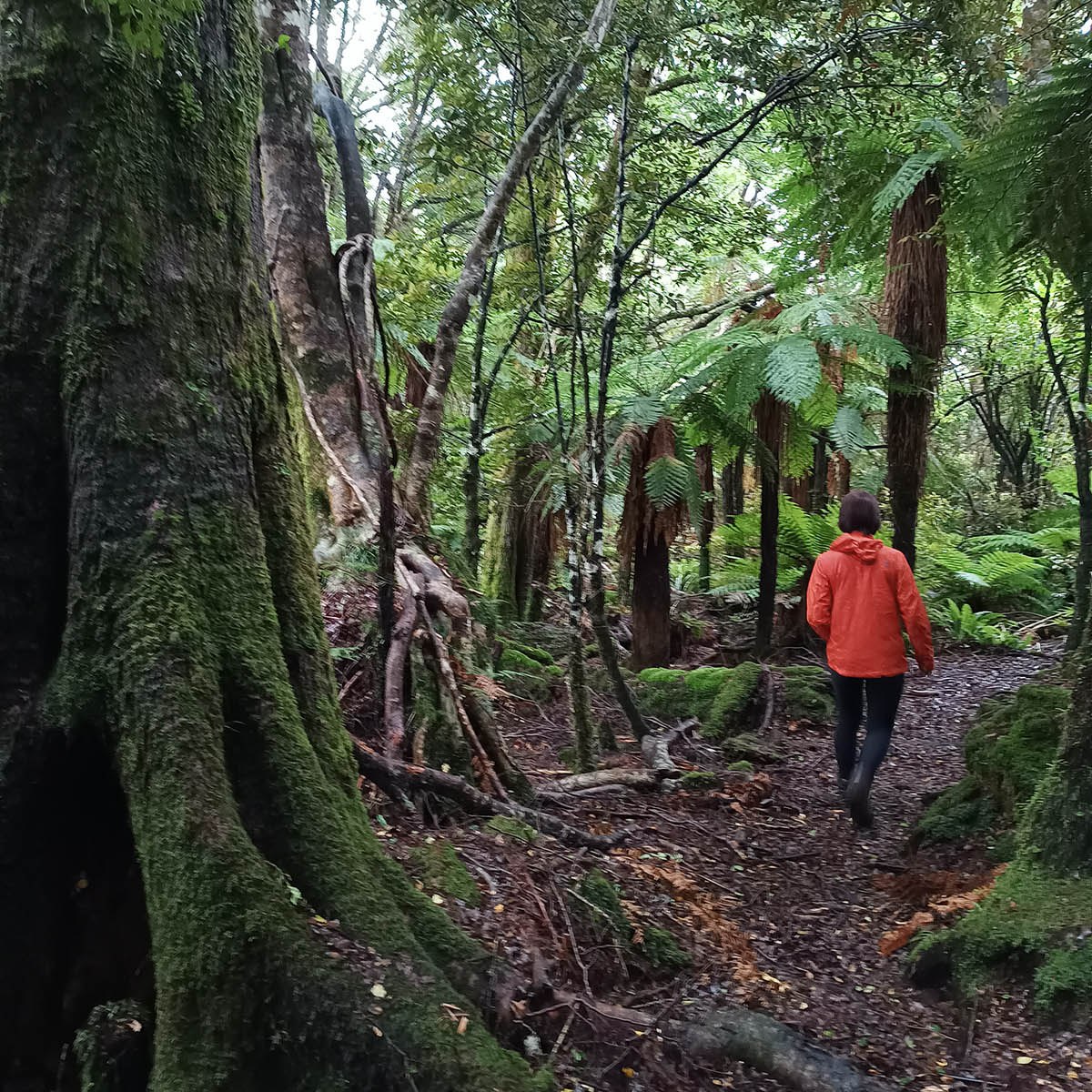 Then we were off to Deerford Track to insert monitoring cards to ascertain what sort of pests are roaming in the area. It was still overcast and quite cold. I had four top layers on, as well as a rainjacket and rain pants. As always, we had a stream-crossing early on. With all the rain, it was deeper than usual (calve high), and very cold. My feet were freezing, which was a reminder that I need to figure out a plan for winter. We’re still in summer and I’m already cold in the forest in wet conditions.