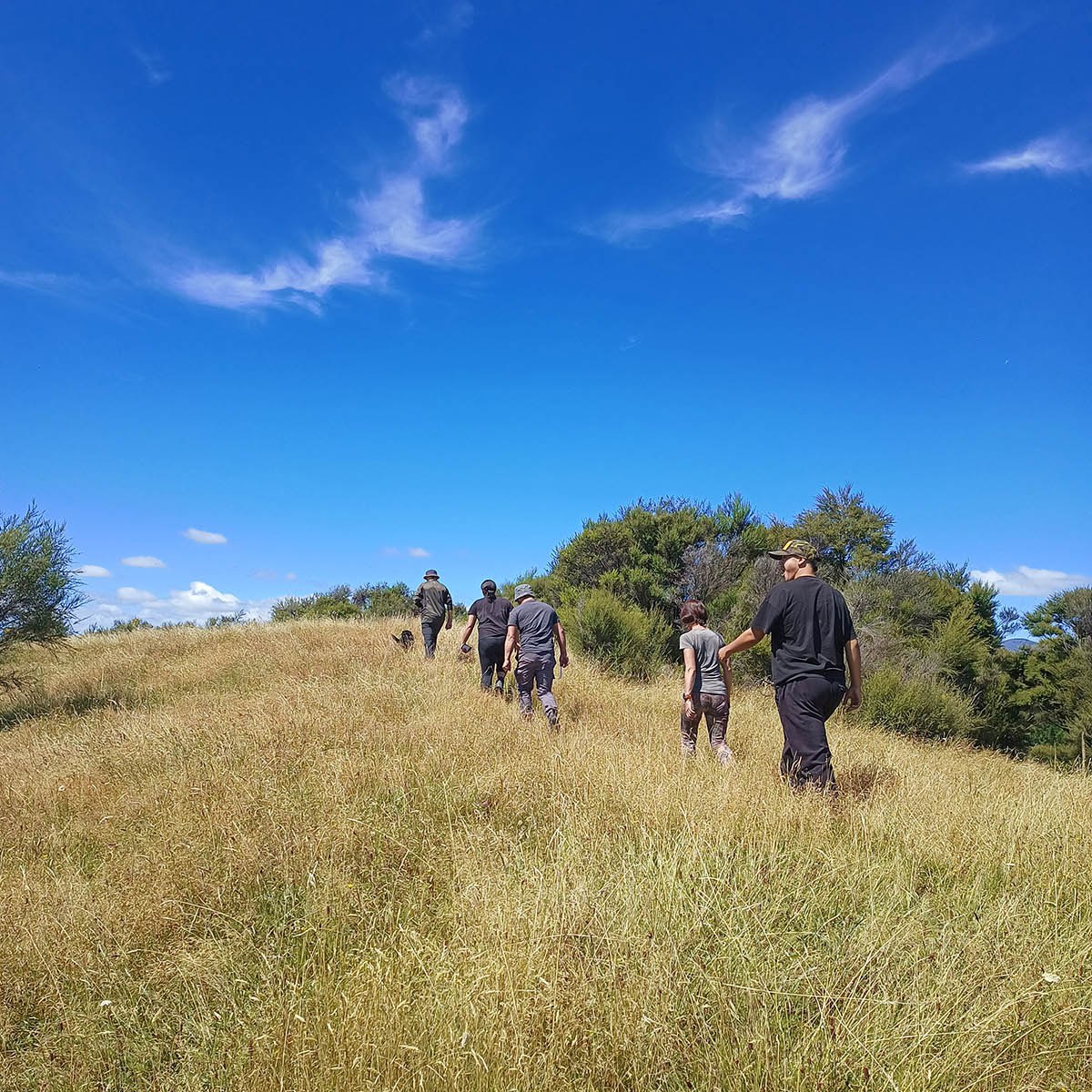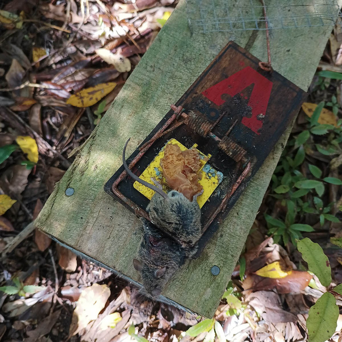 From there we walked down a ridge on Ian’s property to look at different types of traps, from smaller versions for rats and mice, to self-resetting ones for stoats and weasels, to catch traps for cats. In two of the traps there were dead mice. At the far end, away from any buildings and in the forest, we did another five-minute birdcount, and again counted at least six different birds. Some of them, like tui, mimic other birds, making it hard to know which is which.