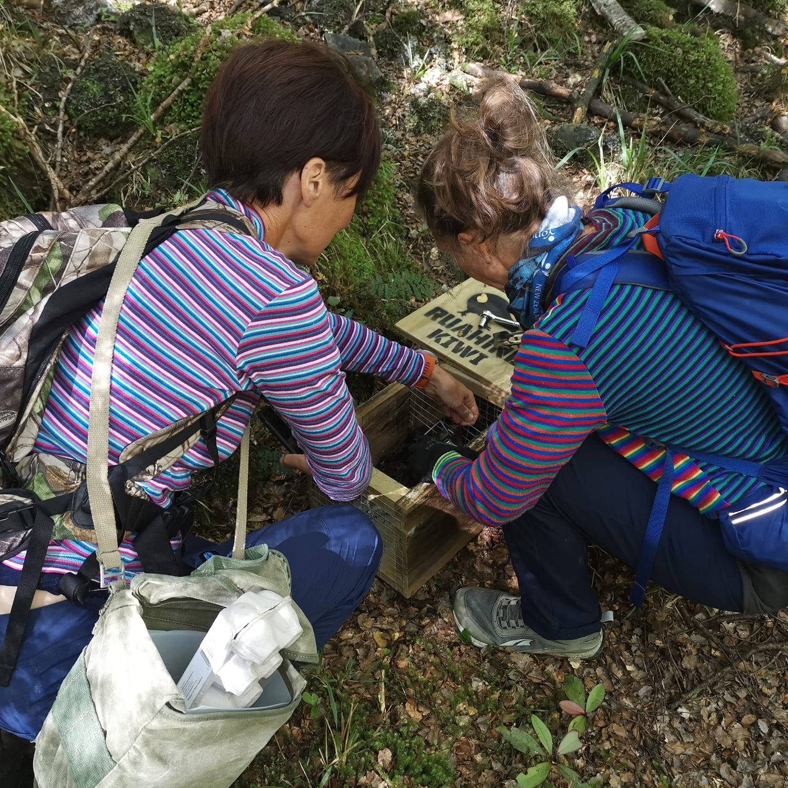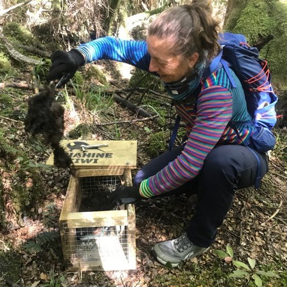In one of the traps, I cleared out what looked like it could have been a black possum. Initially I thought it might be a cat, but the verdict between us four was that it was a possum. It was so decomposed, that it only came out in drips and drabs, making the cleanup quite challenging. Bits of possum were stuck to the bottom of the box, underneath and on top of the trap mechanism, in the mesh where it negotiated the small hole to get to the trap, and it was generally speaking a gigantic mess of rotten possum, maggots and dreck to get out of everything. As I was covered in rotten animal, I couldn’t take my phone out for photos, but Nina and Ian took some.