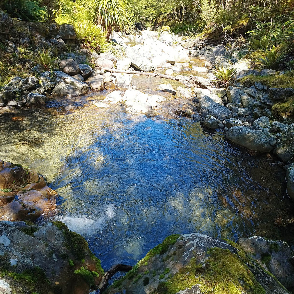 Knights Track involves two stream crossings. I took an extra pair or running shoes again for the first couple of kilometres, after which I swopped into my hiking shoes. Fortunately, the stream levels were down enough that we could rock-hop across, so the extra shoes were redundant.