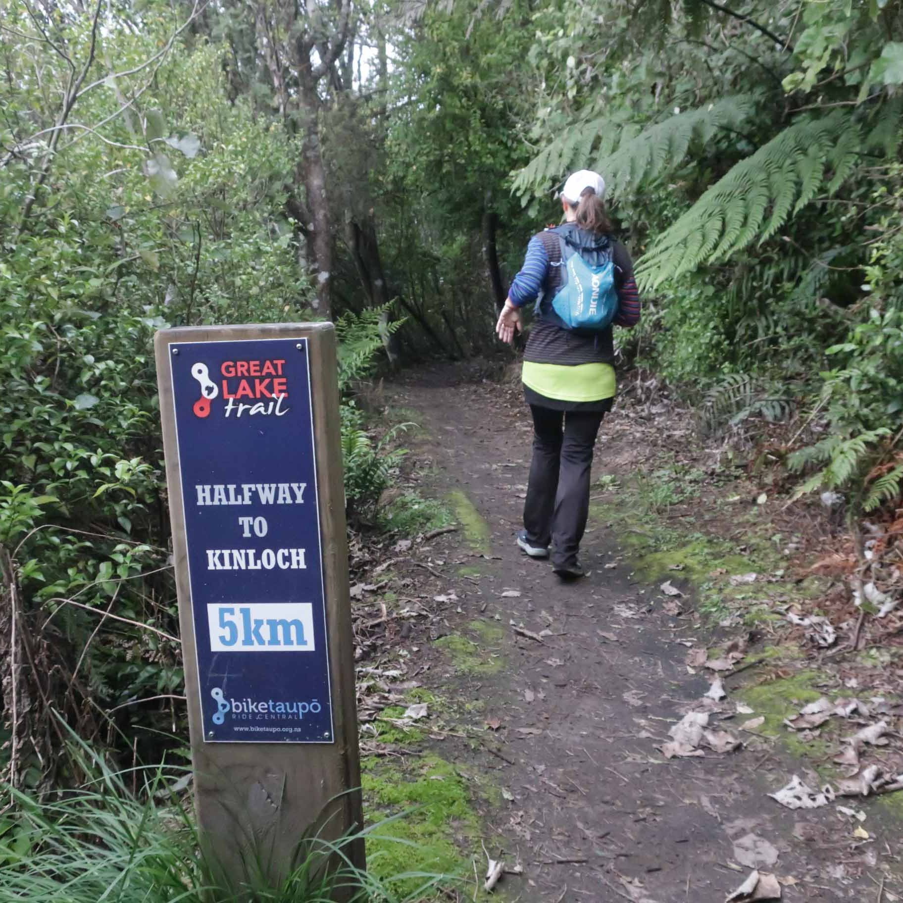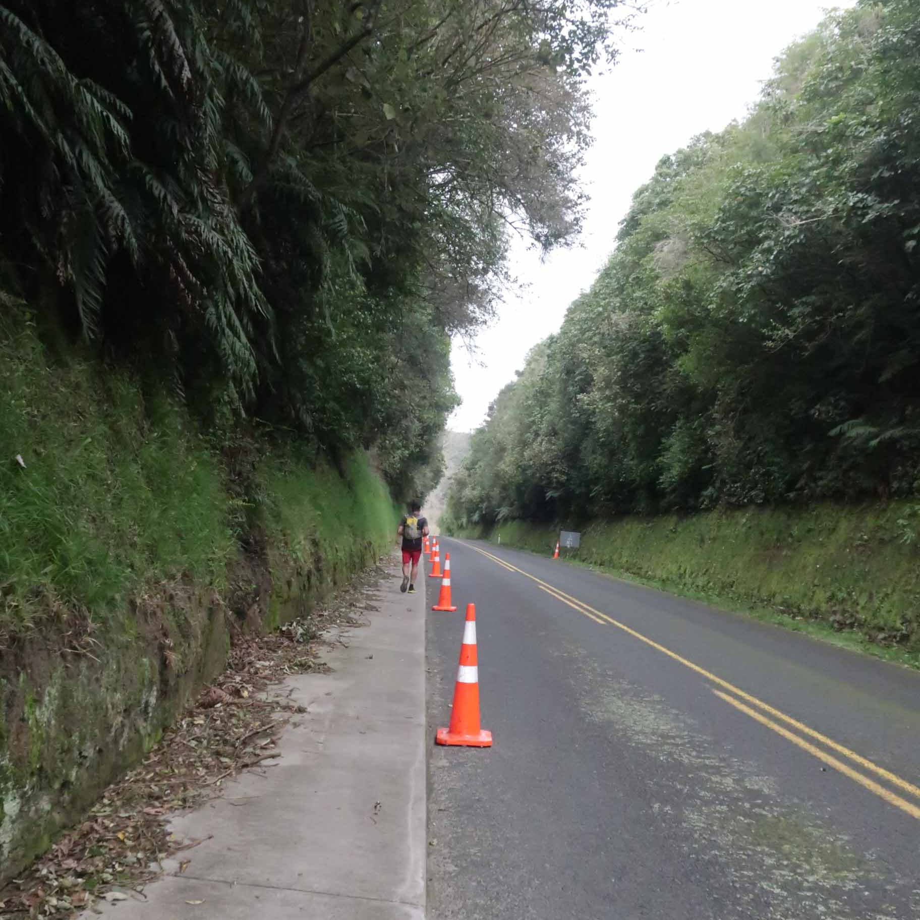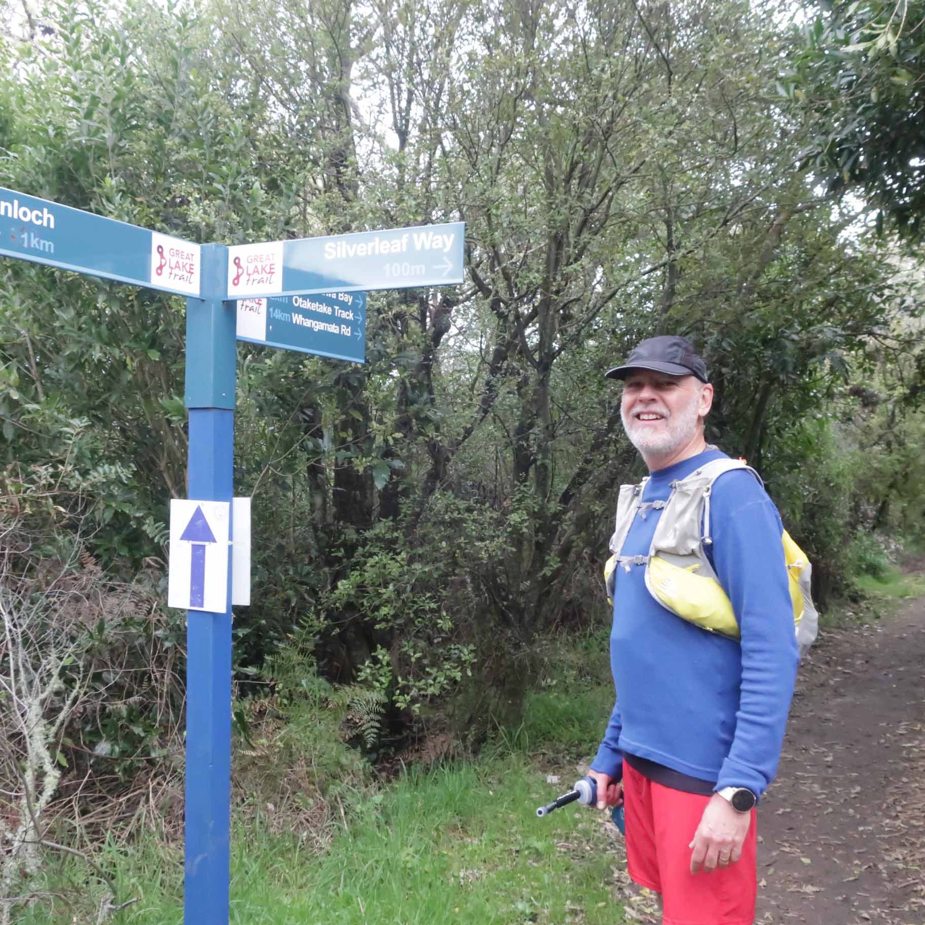 And suffered I did. The first 10km went okay, and I even managed to run four of those in under a seven minute pace. This is the part that runs from the Kinloch domain making a short loop through the village, followed by a lollipop (out-and-back stretch with a big loop at the far end) on the Whangamata Stream Track, before heading onto the Great Lake Trail to follow the new Otaketake Track (it looked quite established to me) to Kawakawa Road. This is the highest point on the course at 600m altitude.