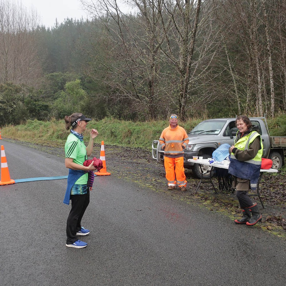 It is an hour and a half drive from Palmy, so we left early to be there when registration opened at 8:30am. Upon arrival, there was a very long queue in the paddock already waiting to get to the front. Due to another event, the hall and usual toilets were off limits, and standing in the breeze in the queue chatting to Matt and Sharon was rather cold. Apart from the breeze, the weather was great and perfect for running, although a lot of kiwis complained about the heat (at only 14 or 15 degrees). Unfortunately for me, that still borders on too cold, but while running, it was okay. Having said that, I would still prefer a warmer temperature.